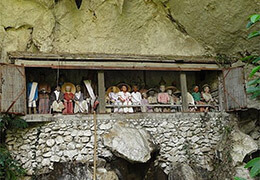Le peuple Toraja vit dans une région montagneuse dans le Sud Sulawesi. La majorité des Torajas est de religion chrétienne (protestante puis catholique) : les clochers des protestants se différencient par un coq. Les Torajas sont connus principalement pour leurs rites et sites funéraires ainsi que par l’architecture de leur habitat.